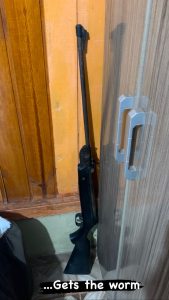 De imediato, o suspeito que se encontrava na residência assumiu a propriedade da arma e das munições e foi conduzido e autuado em flagrante pelo crime de posse irregular de arma de fogo de uso permitido.