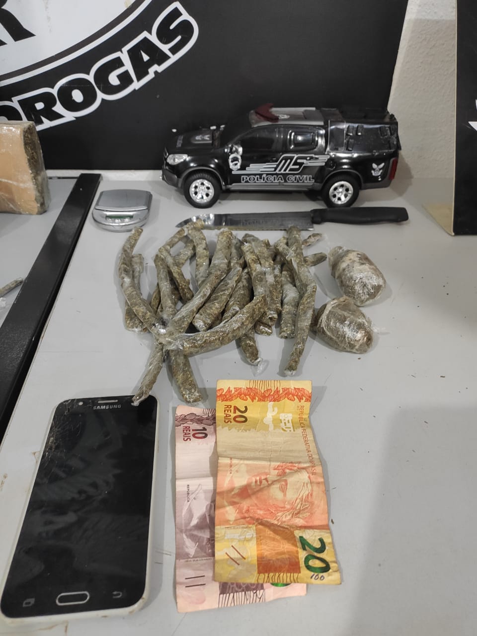 A apreensão aconteceu durante a Operação Ômega, realizada em caráter permanente pela DENAR . Na casa do ‘patrão’ foram encontrados: 138 porções de maconha, com peso total de 3.434g e 02 pedras de pasta-base, com peso de 20,9g. Já na casa de um dos vendedores foram apreendidas 21 porções de maconha, com peso de 252g. E no imóvel do terceiro envolvido os policiais encontraram 29 porções de pasta-base, além de balança de precisão e dinheiro,  fruto do tráfico.