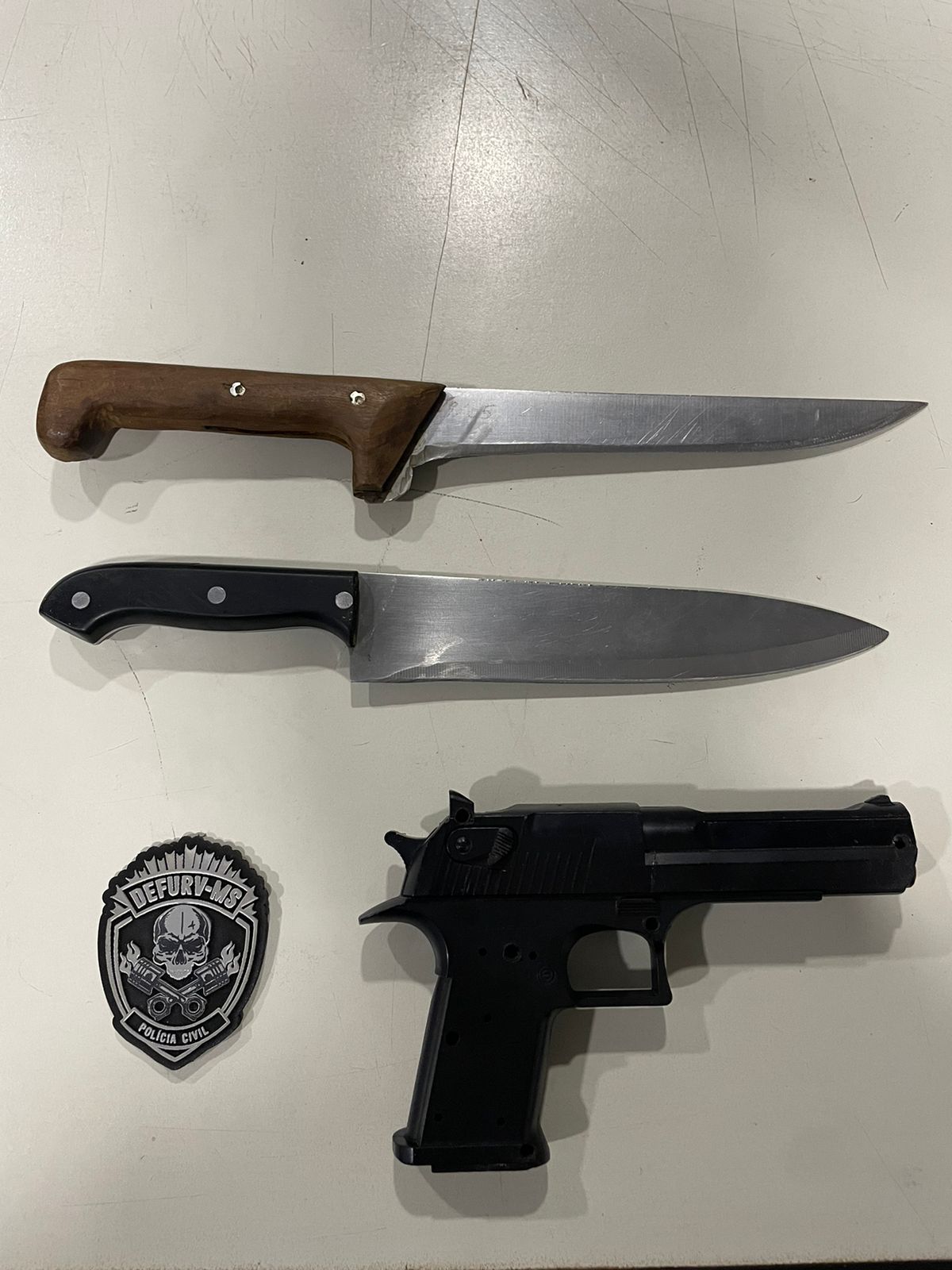 Os policiais ainda localizaram na residência de um dos maiores duas das facas utilizadas nos crimes, além de um simulacro de arma de fogo, que havia sido jogado em um matagal e que os criminosos relataram se tratar da arma de fogo relatada pelas vítimas. Os documentos pessoais e o aparelho telefone celular de uma das vítimas foram recuperados. O telefone já havia sido vendido pelos criminosos, tendo sido possível também identificar o receptador.