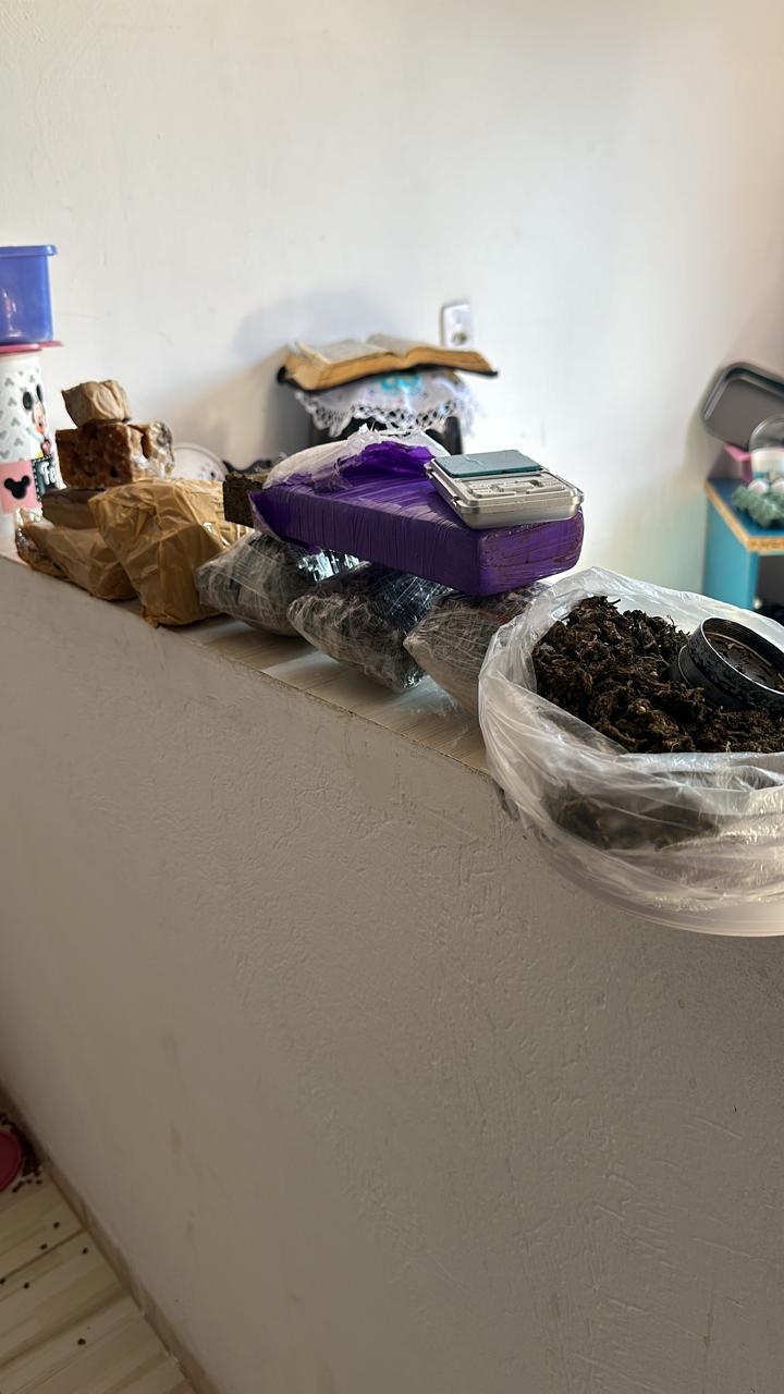De forma coordenada, os policiais adentraram a propriedade, onde encontraram vários tipos de drogas. Um homem que estava o local foi preso. Ele estava em liberdade condicional e fazia uso de tornozeleira eletrônica.