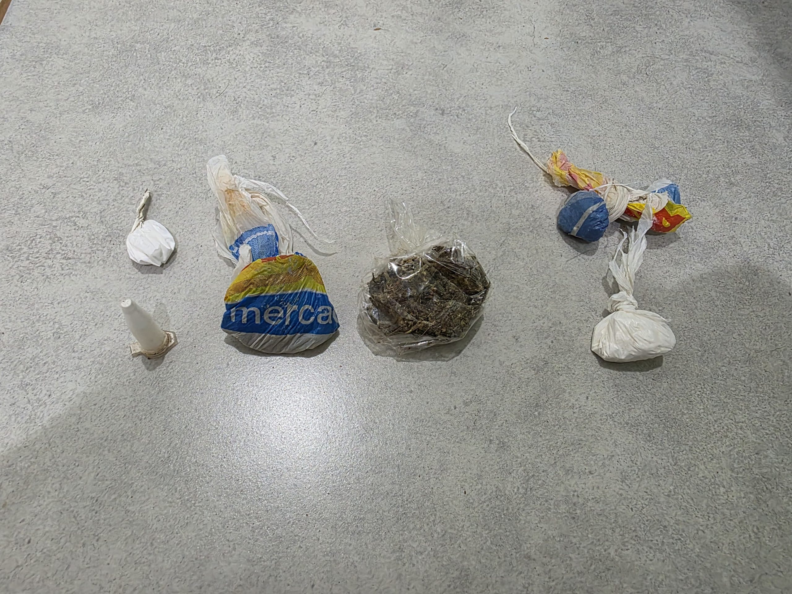 Em sua posse foram encontrados dois invólucros de cocaína, um cigarro artesanal de maconha e uma porção da mesma droga escondida no calçado.