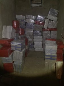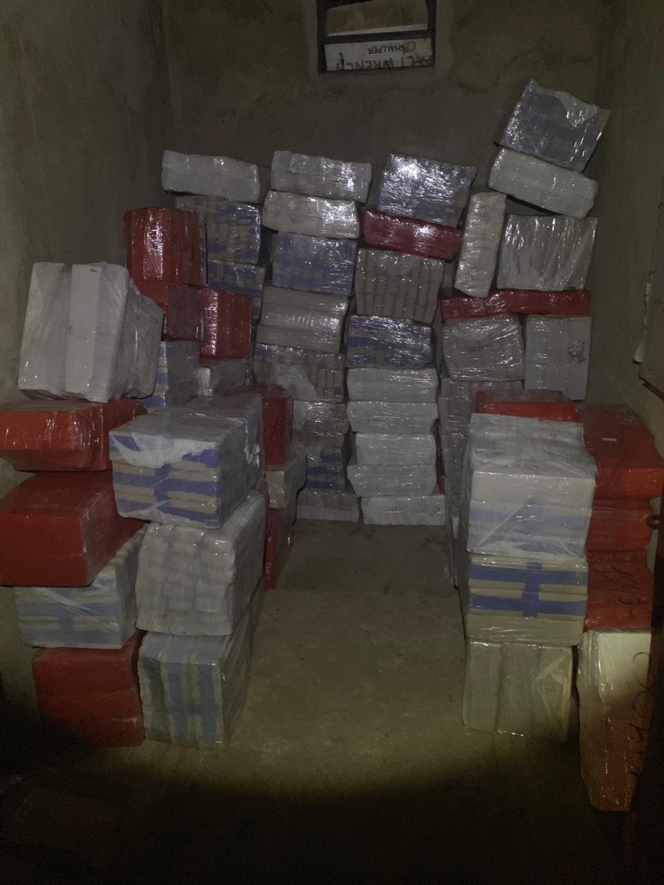 Os policiais monitoraram o local por várias horas, porém não registrou a presença de pessoas. Ao entrarem no depósito, as equipes localizaram o entorpecente acondicionados em fardos, escondido dentro de uma sala.