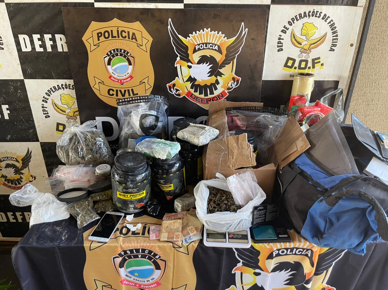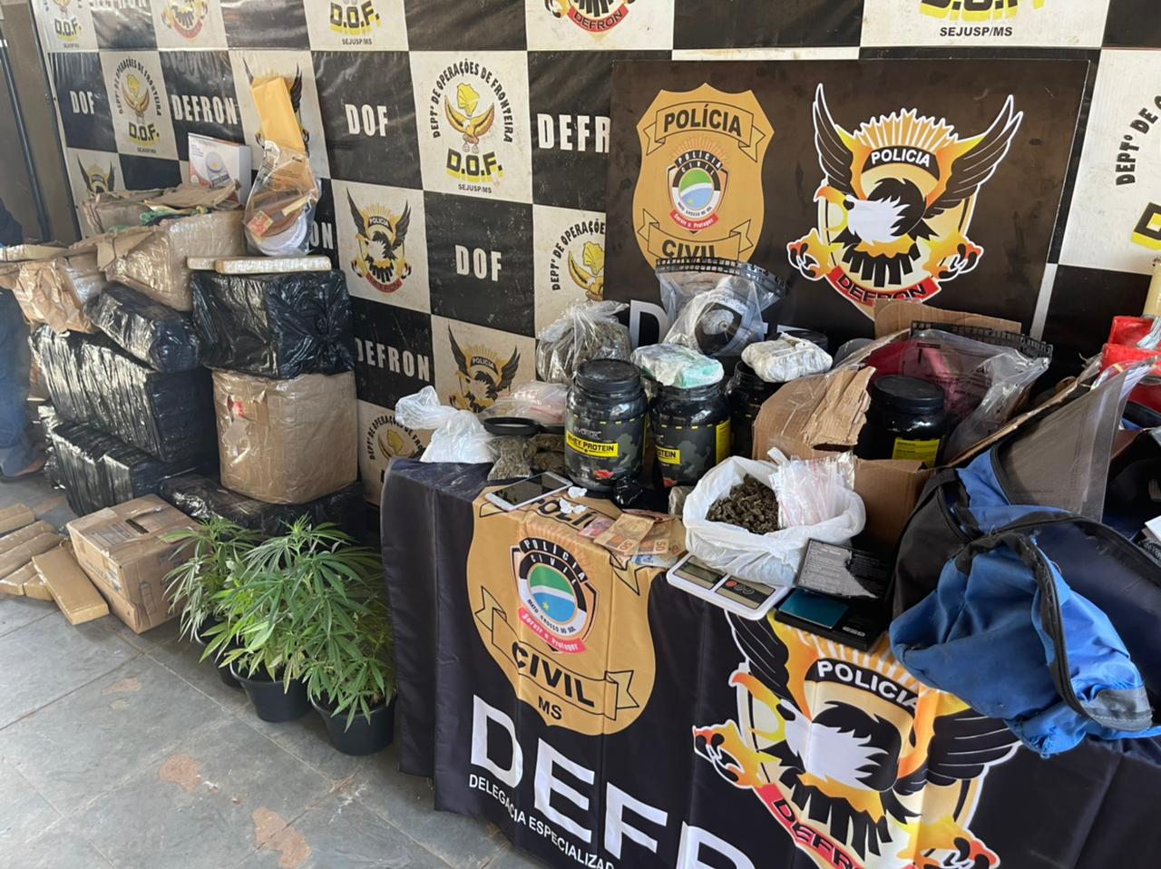 Ao ser cumprido o mandado de Busca e de Prisão Preventiva contra um dos alvos, residente em Dourados, os policiais identificaram um esquema de envio de maconha, cocaína e skunk baseado na retirada do produto do interior de embalagens contendo whey protein (suplemento alimentar), sendo colocado no lugar essas drogas, as quais eram remetidas, via Correios, para todo o país.