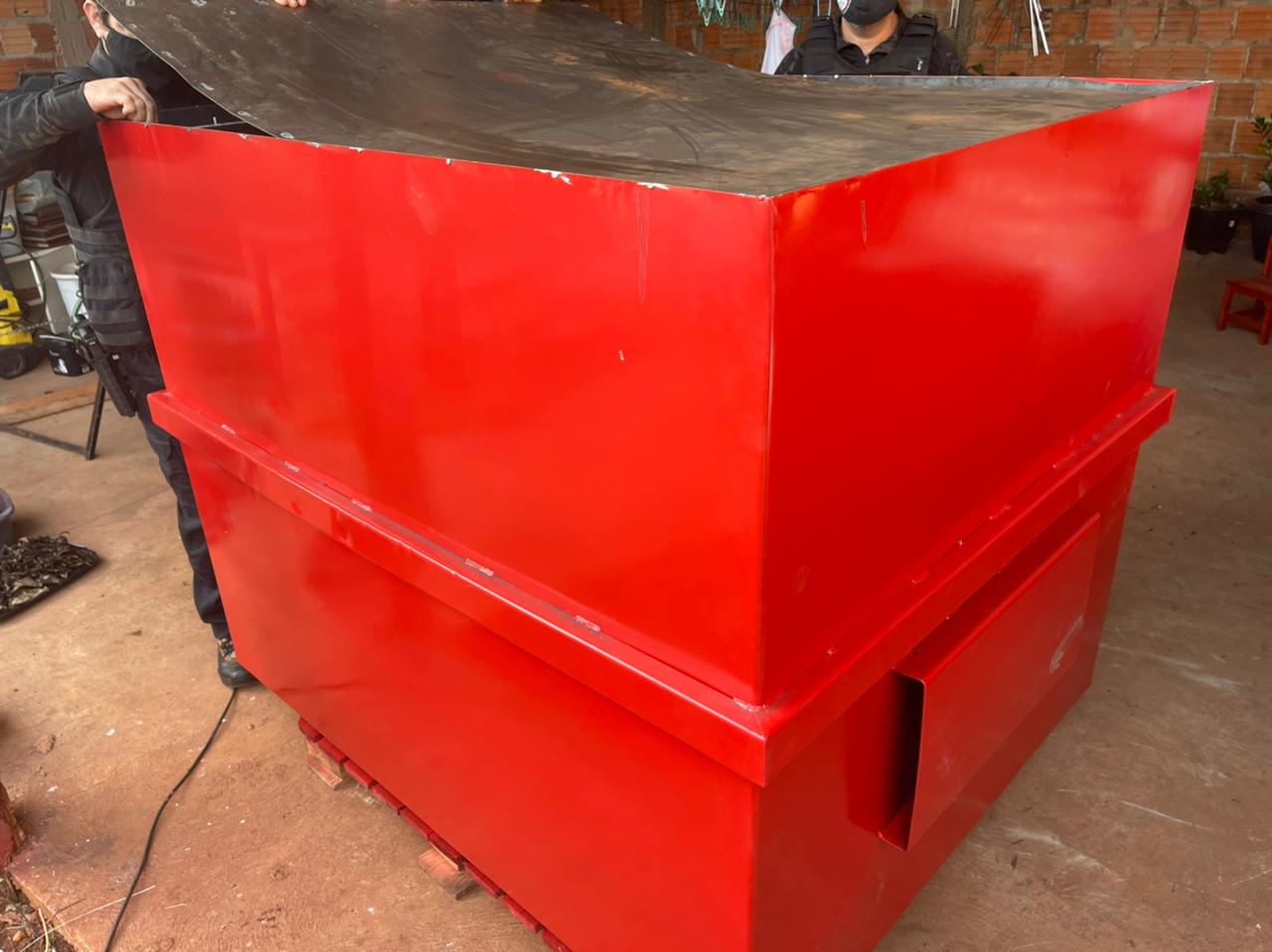 Em outro imóvel residencial os policiais flagraram em uma varanda uma grande caixa metálica, selada, destinada a armazenar óleo hidráulico. Contudo, constatou-se que nela eram colocados tabletes de maconha que eram enviados para a região Nordeste do Brasil.