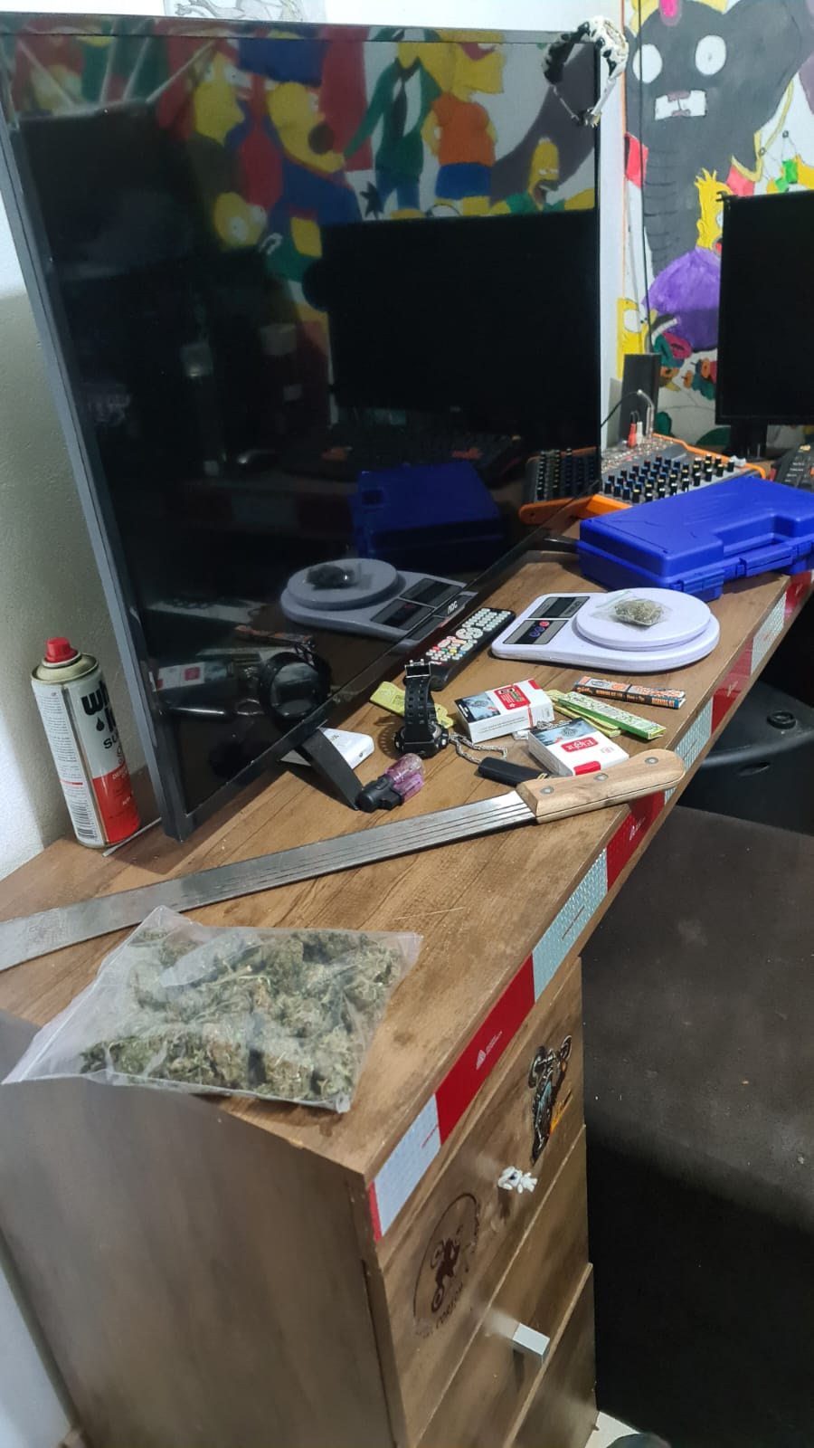 No total foram apreendidos uma pistola 9mm de fabricação Turca, 45 munições calibre 9mm, uma espingarda adaptada para calibre .22, R$ 2.370,00, 35,755 Kg de maconha, 510,0 gramas de haxixe, três pedras de crack pesando 1,0 g e cinco aparelhos celulares.