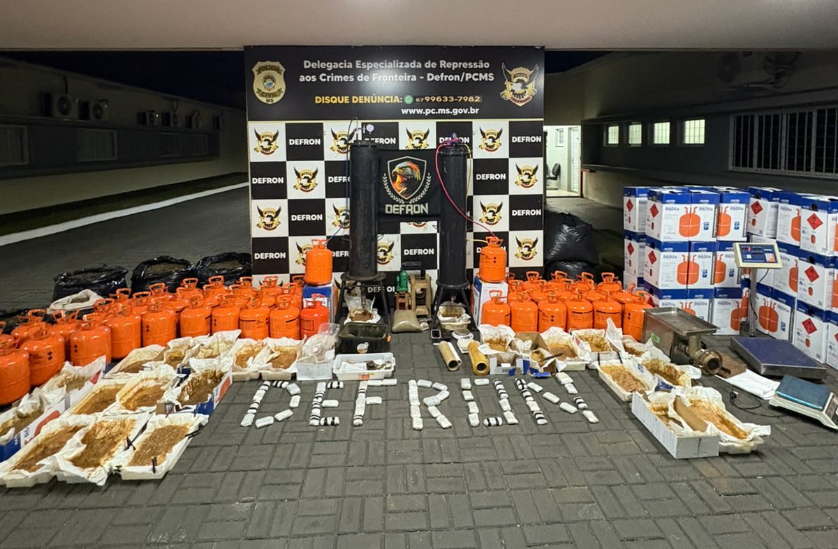 No outro imóvel, identificado como laboratório, foram apreendidos 100kg de skunk, 20kg de DRY, além de equipamentos utilizados no preparo, como prensa, formas, cilindros pressurizados, 30 botijões de gás de geladeira e quatro balanças de precisão. Os dois homens foram autuados em flagrante por tráfico de drogas e associação para o tráfico e encaminhados à sede da DEFRON, em Dourados-MS, para os procedimentos legais.