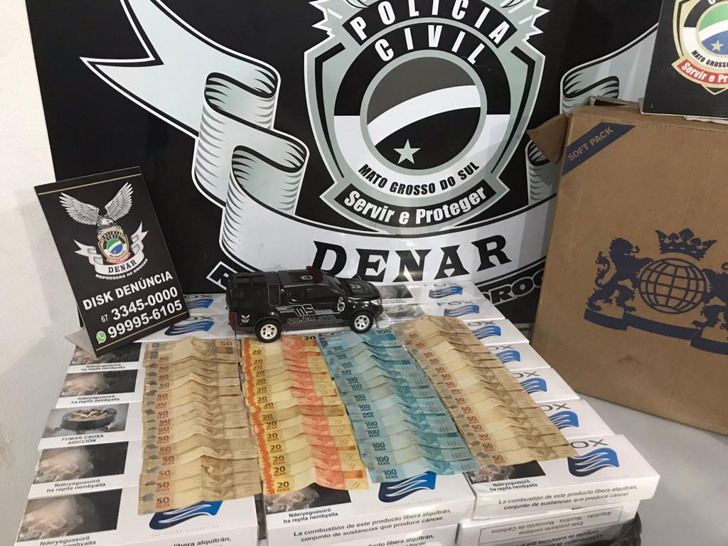 Foi apreendida 1 arma de fogo, 8 veículos, 110 pacotes de cigarro e R$ 17.531,00 em dinheiro.