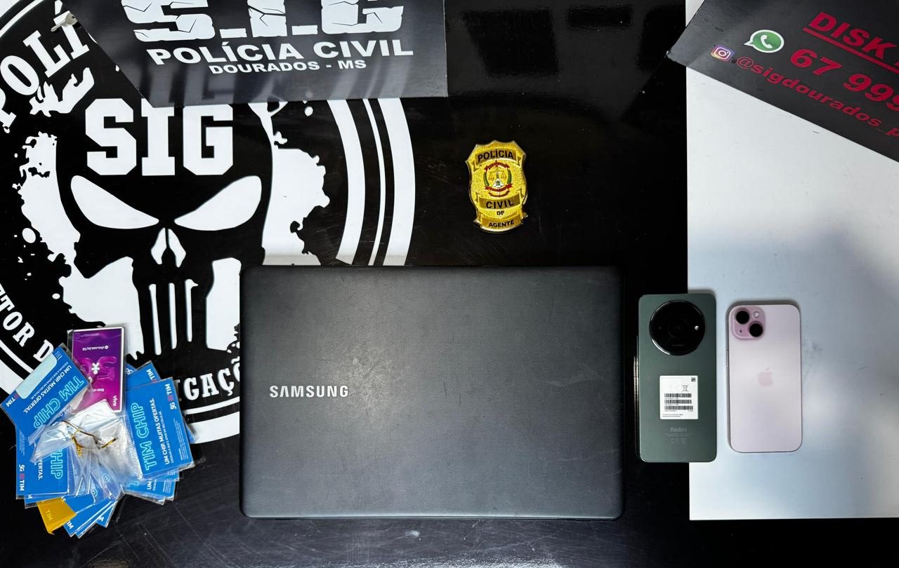 Em Dourados, foram cumpridos dois mandados de busca e apreensão, resultando na apreensão de notebook, aparelhos celulares e outros objetos eletrônicos.