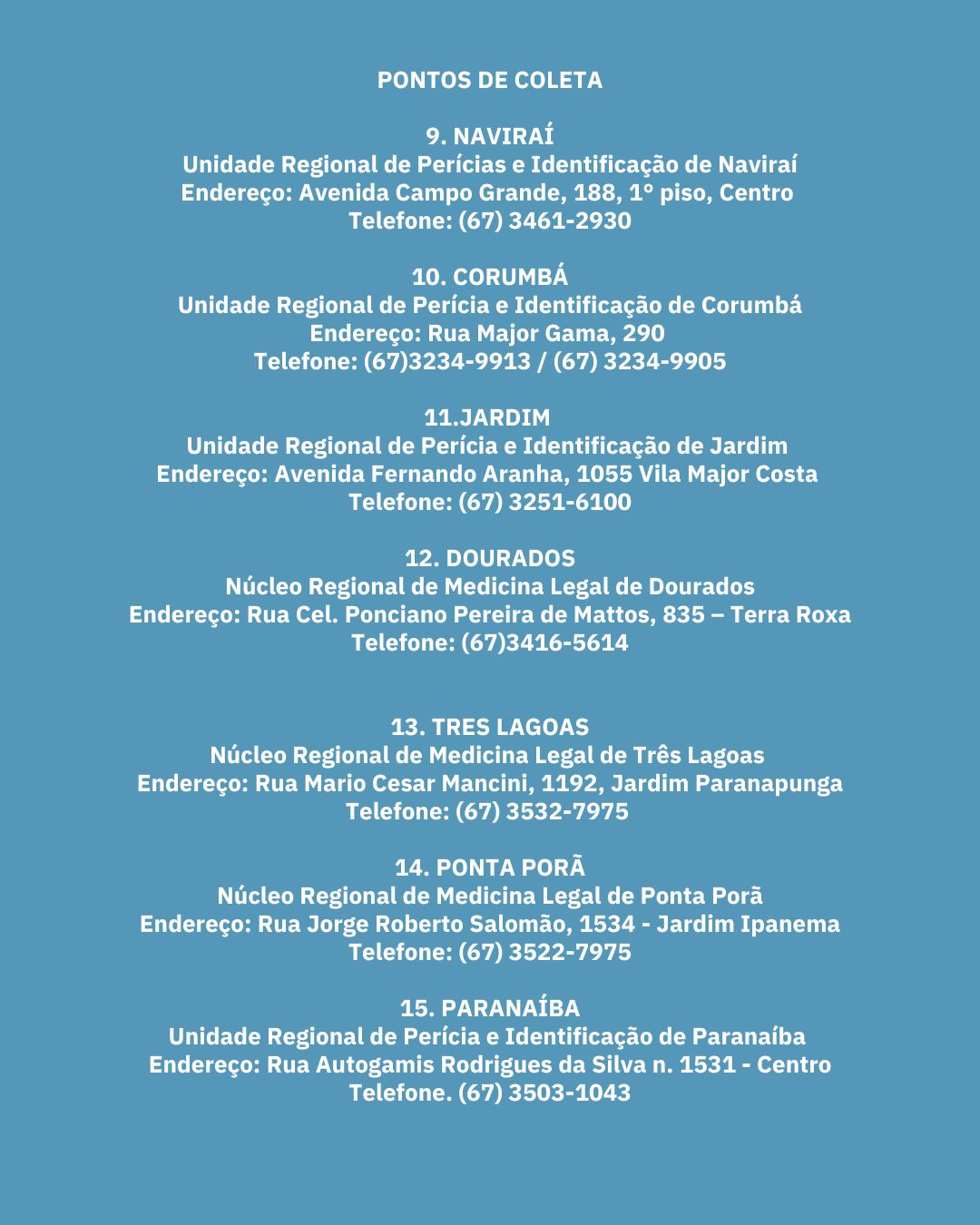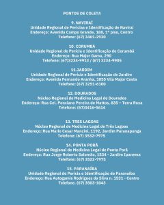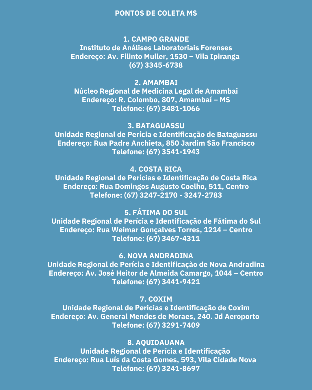 O Delegado-Geral reafirmou o apoio da Polícia Civil de Mato Grosso do Sul à campanha com a mobilização das Delegacias de todo o estado visando obter grande número de coletas para o enriquecimento do banco de dados nacional e o fortalecimento da política nacional de busca de pessoas desaparecidas.