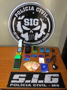 Com base nas características do indivíduo, uma equipe da Polícia Civil do MS passou a fazer buscas para tentar localizar o autor, que foi encontrado no estabelecimento indicado. Ao ser abordado pelos policiais, o homem de 28 anos ficou nervoso e acabou admitindo que possuía máquinas de cartão de crédito em sua posse.