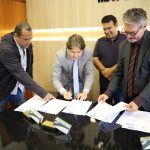 O Delegado-Geral da Polícia Civil de Mato Grosso do Sul, Lupérsio Degerone Lúcio, assinou na manhã desta terça-feira (16), a doação de 30 mil munições calibre .40, à Guarda Civil Municipal de Corumbá. O ato contou com a presença do Delegado-Geral – Márcio Custódio; do diretor do Departamento de Recurso e Apoio Policial – DRAP – delegado Marcos Takeshita; do coordenador do Departamento de Polícia do Interior – delegado João Reis Belo; do coordenador do Setor de Armamento da PCMS – delegado Márcio Shiro Obara; do deputado estadual Paulo Duarte; do prefeito de Corumbá, Gabriel Alves de Oliveira e do secretário Municipal de Segurança Pública e Defesa Social, Fernando Jorge Castro de Lucena.