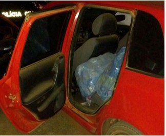 Por volta da meia noite e meia do dia (28) os Policiais Civis interceptaram o veiculo Fiat vermelho, com placas de Batayporã no local citado.
