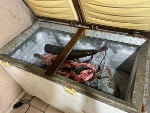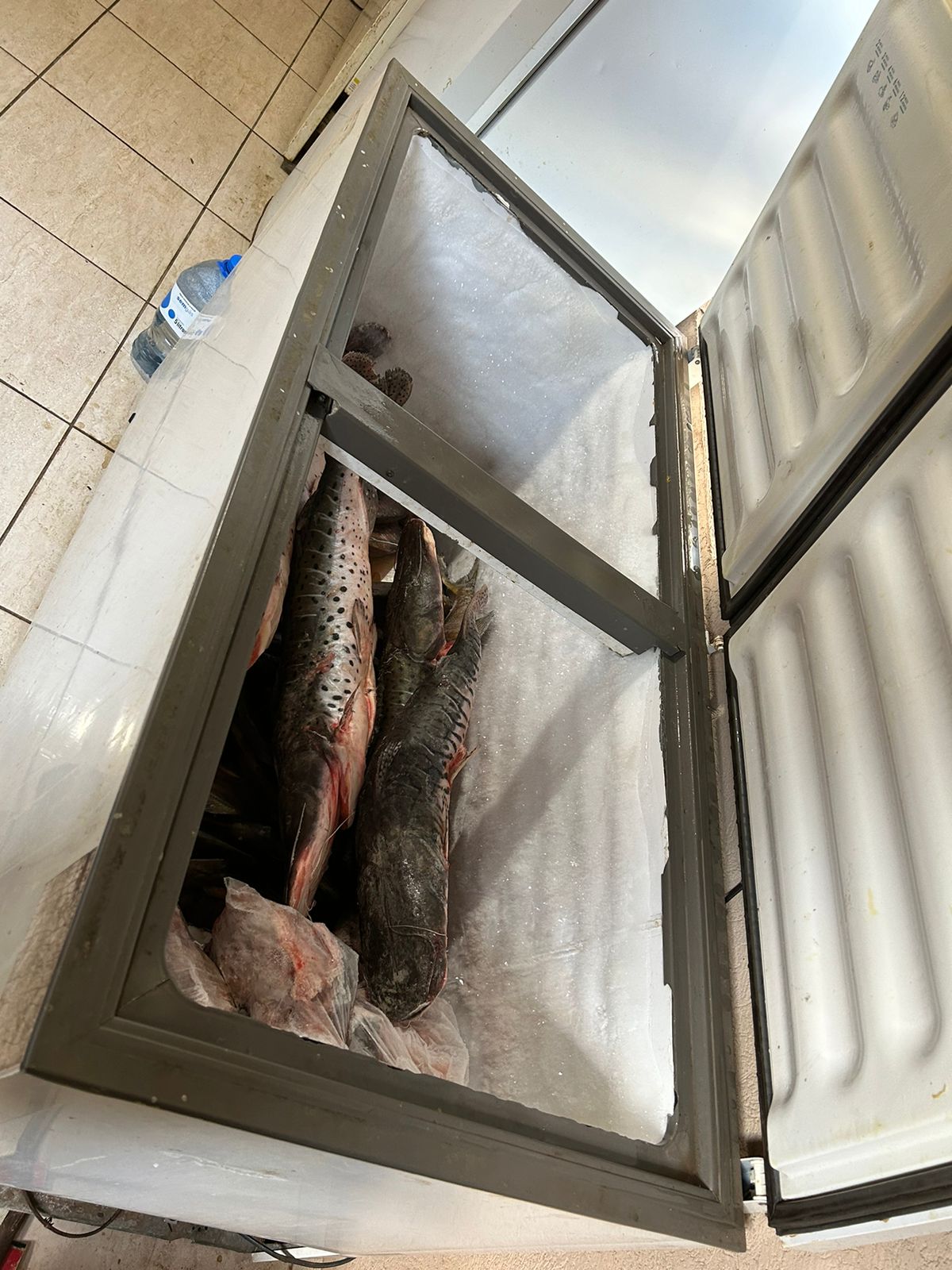 Na residência do proprietário da referida peixaria foram encontrados 171,8 kg de pescados com sinais de captura por meio de petrechos de malha (rede e tarrafa), além disso, foram apreendidos 03 (três) freezers utilizando para a refrigeração dos pescados ilegais, sendo aplicada multa pecuniária administrativa pela Polícia Militar Ambiental no valor de R$ 25.000,00. Em um restaurante da cidade foi constatada a ausência de Declaração de Estoque referente a diversas espécies de pescados, resultando, então, na apreensão de 19,7 kg de pescados e 01 (um) freezer utilizado para a refrigeração dos pescados ilegais, sendo aplicada multa pecuniária administrativa pela Polícia Militar Ambiental no valor de R$ 10.000,00.