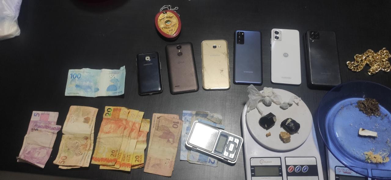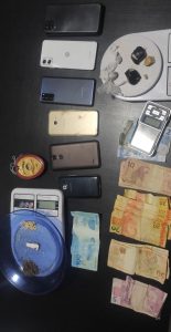 Assim, ao se aproximarem do local de comércio de drogas, um dos investigados, ao perceber a aproximação policial tentou descartar a droga que trazia consigo e correu para dentro do imóvel. Os policiais localizaram o entorpecente descartado e constataram que se tratava de uma pedra de Crack. Que na varanda da casa visualizaram uma balança de precisão. Que ingressaram no imóvel e localizaram outras pedras de “Crack” e porções de maconha, dinheiro sem origem lícita, em notas diversas, três balanças de precisão e aparelhos de telefonia celular, sendo que os investigados confirmaram para os policiais que vendiam drogas no local e que o dono da boca seria o mais velho deles, de alcunha “Mineiro”, sendo todos encaminhados para a Delegacia de Polícia onde foi ratificada a prisão em flagrante dos três indivíduos por tráfico de drogas e associação para o tráfico.