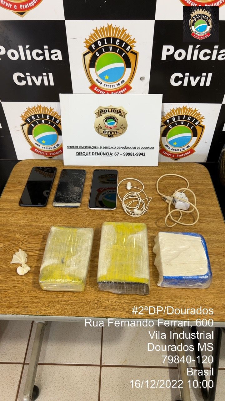 Já na busca realizada em uma das celas da PED, os policiais da 2ªDP/DDOS localizaram 5 aparelhos celulares, mais de 500g de cocaína e mais de 1,1kg de maconha. Um dos aparelhos celulares localizados na penitenciária foi identificado como sendo o utilizado nos crimes de estelionato e extorsão pelo investigado. Segundo informações, o indivíduo conseguia obter mais de 30 mil reais mensais por meio dessas práticas criminosas.
