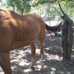 Os policiais localizaram o cavalo, que não apresentava marcas de propriedade, mas tinha diversos ferimentos recentes.
