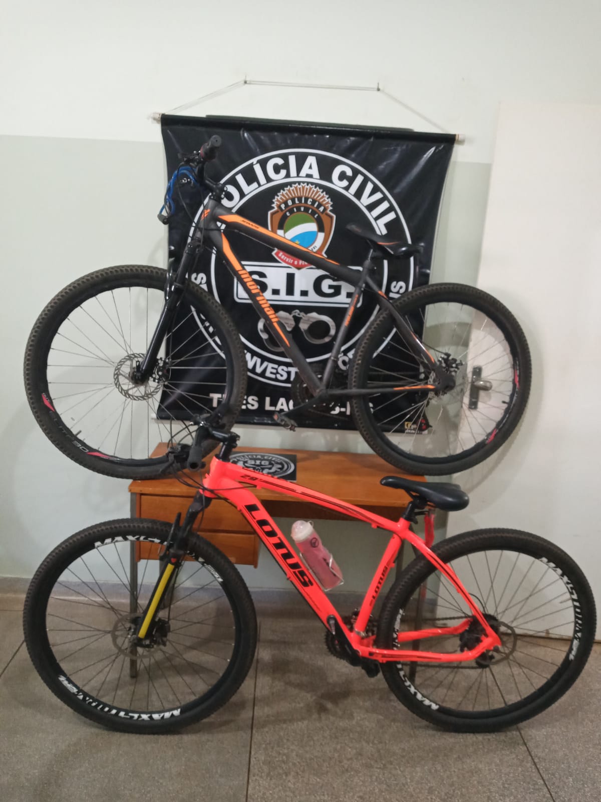 As bicicletas foram apreendidas para constatação de suas origens, pois ao que tudo indica são produtos de furto, estando as mesmas na sede do SIG para reconhecimento das prováveis vítimas.