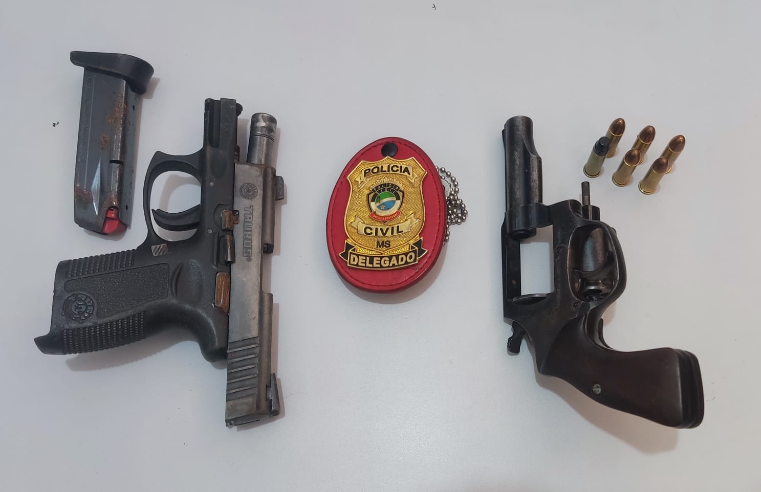 Neste final de semana a Equipe da Delegacia de Polícia Civil de Bandeirantes, com apoio de uma equipe do Instituto de Criminalística de Ponta Porã, realizou a prisão do acusado, que estava escondido no Assentamento Itamarati, na Cidade de Ponta Porã-MS. Com ele foi apreendida outra arma de fogo, calibre .38.