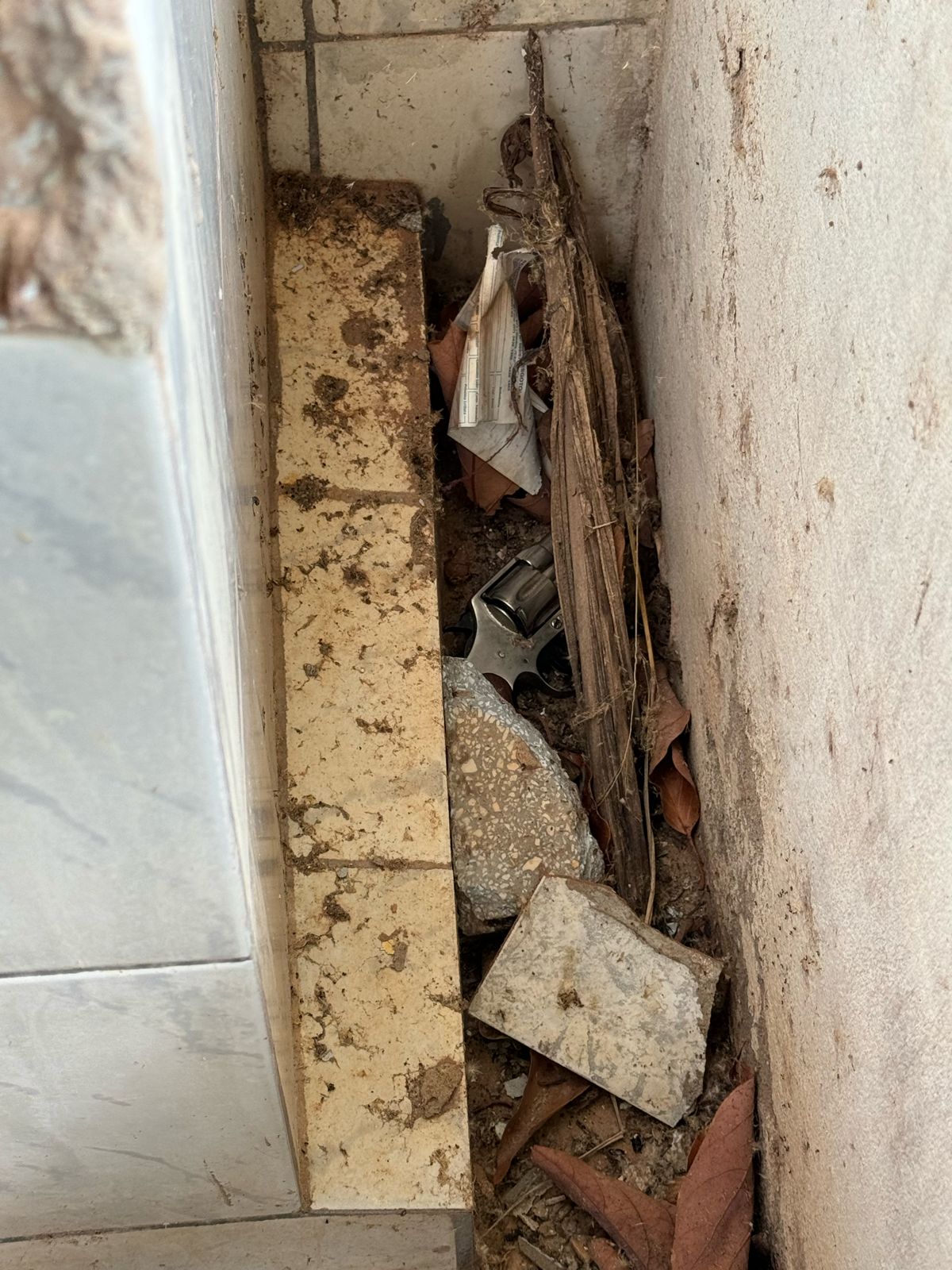 Após buscas pela cidade, o indivíduo foi localizado próximo a uma residência abandonada. A arma do crime, um revólver calibre .38 também foi encontrada e apreendida.
