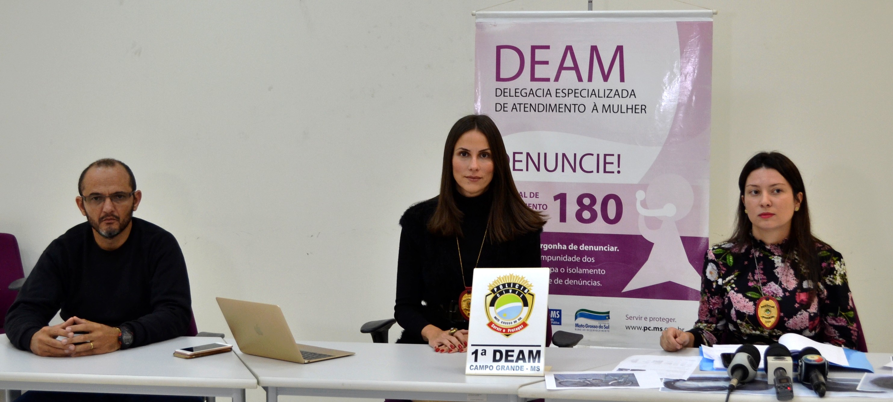 CAMPO GRANDE (MS): Na manhã desta quinta-feira (07), a Polícia Civil, através da Delegacia de Atendimento à Mulher, apresentou o resultado das investigações envolvendo uma adolescente de 15 anos, cujo o corpo foi encontrado no dia 31 de maio, no Jardim Tijuca. A Delegada Titular da DEAM, Dra. Ariene Nazareth Murad de Souza, juntamente com a Delegada Adjunta, Dra. Fernanda Mendes, concederam entrevista coletiva, no auditório da Casa da Mulher Brasileira, onde deram detalhes da prisão de Filipe Castro Souza, de 23 anos, autor confesso da morte da jovem.