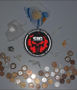 Diante disso, ele recebeu voz de prisão, também, por estar em flagrante de tráfico de drogas.