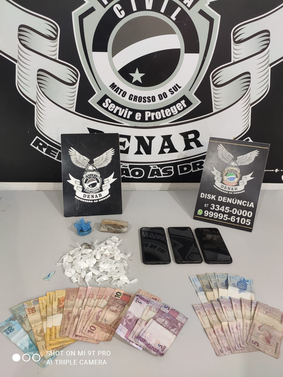 A Polícia Civil prendeu, ontem (9), E. P. J. (29), N. C. S. (25) e R. O. R. (31), suspeitos de praticar os crimes de tráfico de drogas majorado e associação para o tráfico. As prisões foram feitas no bairro Jardim Aeroporto, em Campo Grande-MS, por equipes da Delegacia Especializada de Repressão ao Narcotráfico (DENAR).