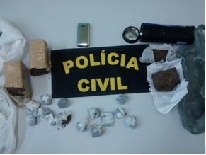 Conforme informações, foi  apreendido várias porções de maconha, algumas postas em tabletes e outras já embaladas em porções menores prontas para a comercialização.lu