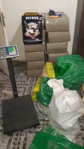 Durante incursão no local, os policiais localizaram vários fardos de maconha, além de uma balança industrial. Pesada, a droga totalizou 300 quilos.