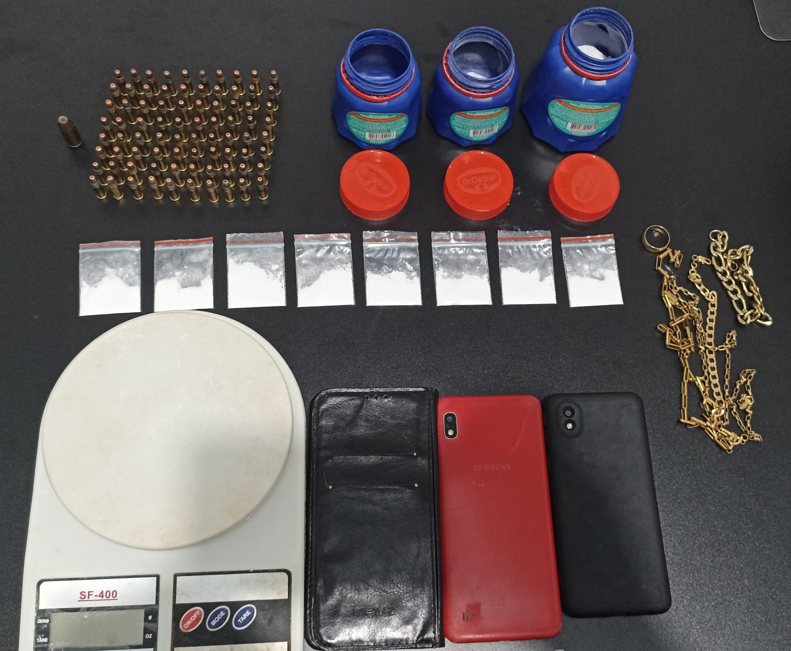 Após monitoramento e recebimento de denúncia, uma equipe da Polícia Civil foi até o local para averiguar os fatos e localizou oito porções de cocaína na residência do suspeito de 40 anos, bem como apreendeu inúmeras munições de arma de fogo. O suspeito, que já possuí outras passagens, responderá por tráfico de drogas e posse ilegal de munições de arma de fogo.