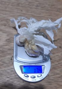 As buscas duraram poucos minutos, sendo que os policiais civis encontraram considerável quantidade de pasta-base de cocaína e uma balança de precisão em um matagal. Foram 17,4 gramas do entorpecente, distribuídos em quatro trouxinhas.
