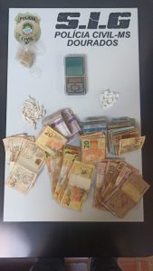 Na residência havia um veículo, onde foi encontrada uma balança de precisão e grande quantidade em moeda nacional em notas de diversos valores, indicando que se tratava de dinheiro auferido pelo tráfico.