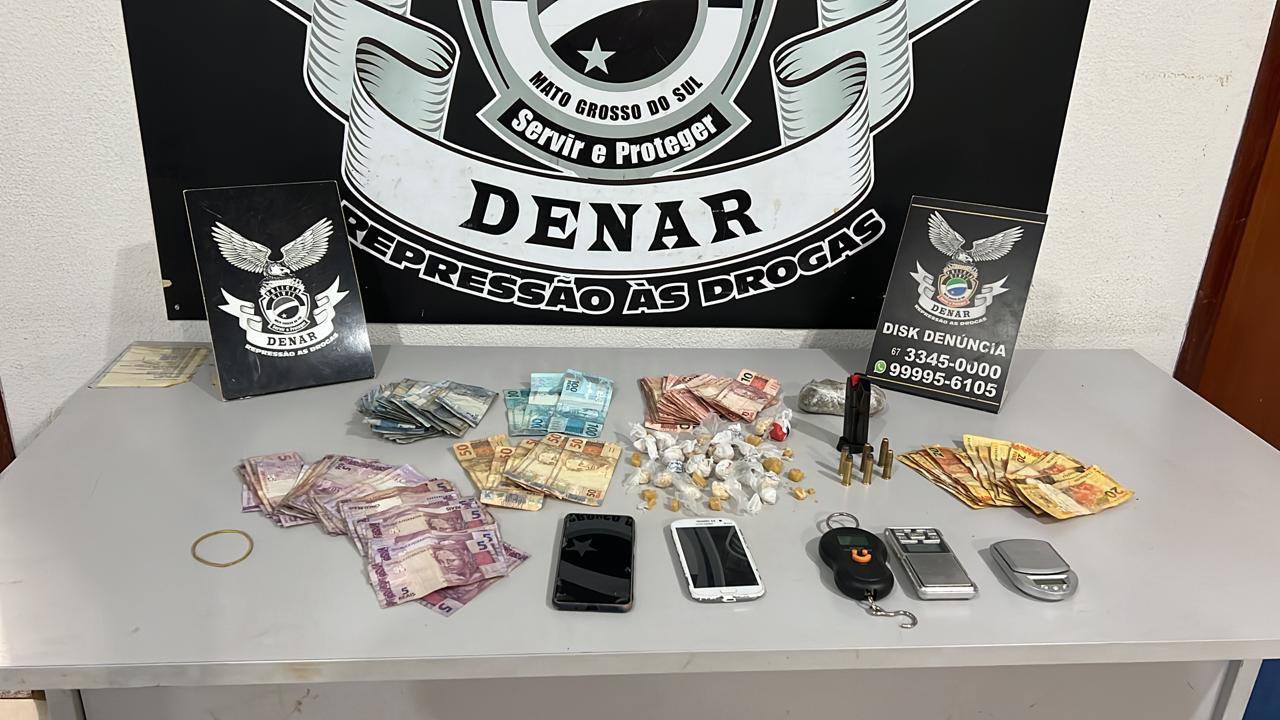 Na tarde desta sexta-feira (25), a Polícia Civil de Mato Grosso do Sul, por intermédio da Delegacia Especializada na Repressão ao Narcotráfico (DENAR), prendeu em flagrante G.S. de 34 anos, suspeita de praticar os crimes de tráfico de drogas e posse irregular de acessório e munições de arma de fogo de uso permitido. A prisão aconteceu na Vila Nhanhá, em Campo Grande-MS.