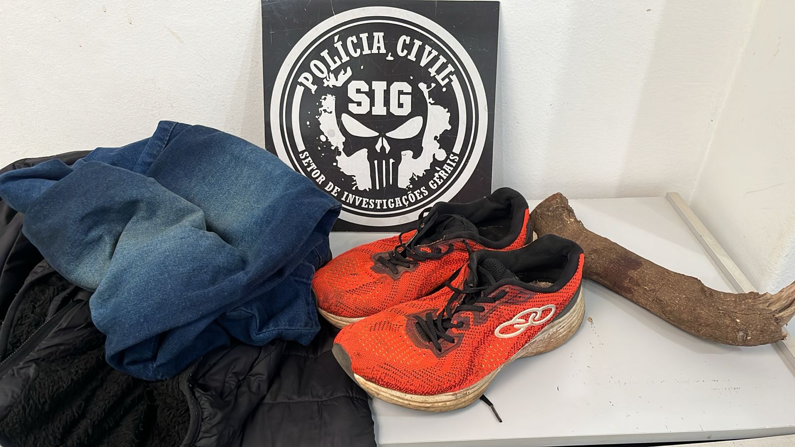 O instrumento do crime, bem como as roupas utilizadas pelo suspeito foram encontradas e apreendidas pelos investigadores.