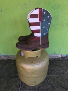 A equipe policial localizou 1 botijão de gás, escondido em meio à vegetação de um terreno baldio, em frente à residência da vítima e um par de botas de couro que estava sobre o telhado de uma igreja que fica ao lado da residência da vítima.