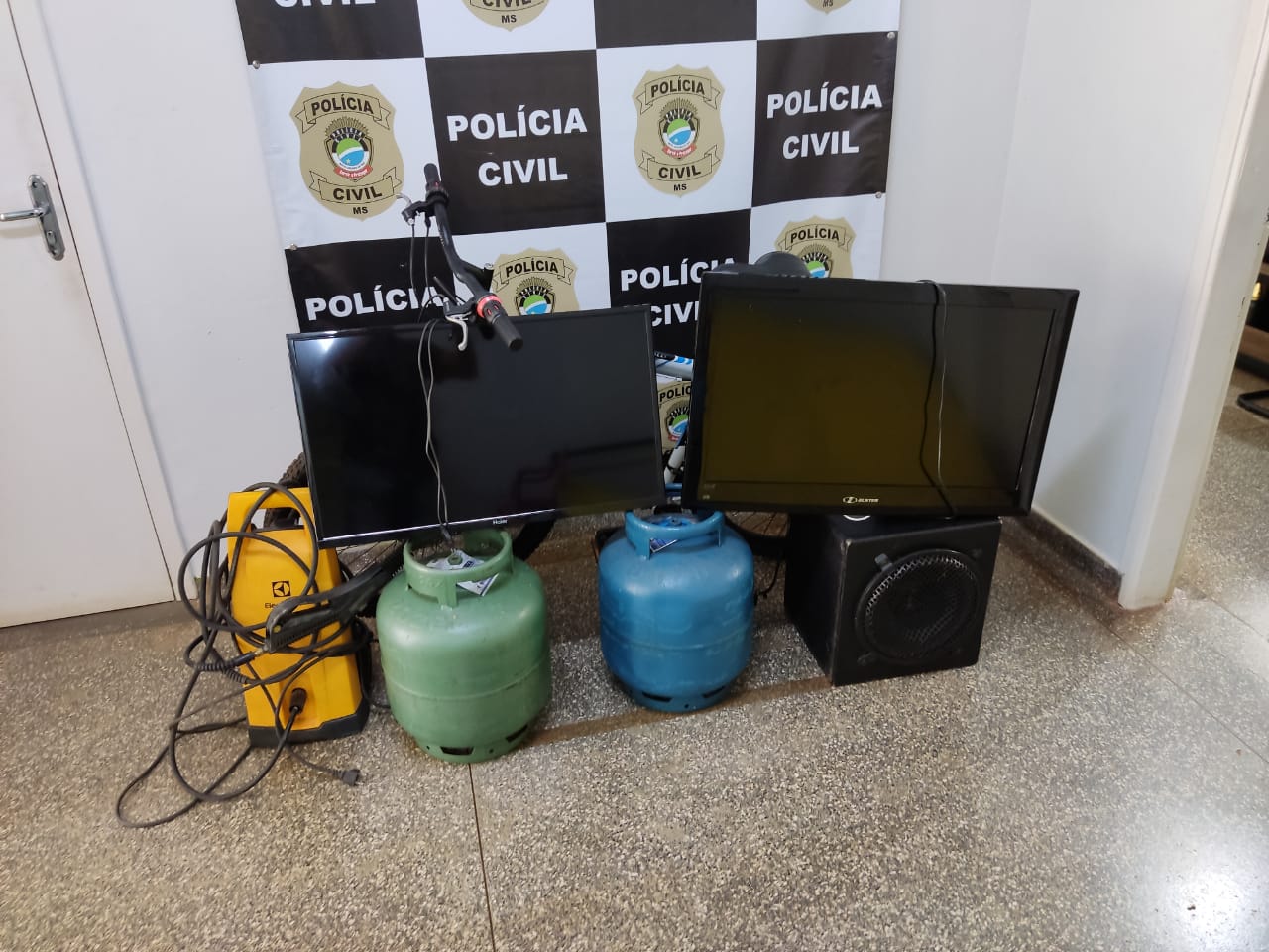 Os policiais civis localizaram e apreenderam os objetos furtados. O suspeito foi indiciado pelo crime de furto qualificado e os bens serão restituídos à vítima.
