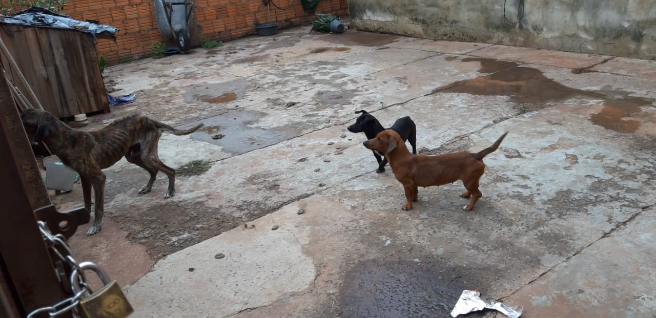 Campo Grande (MS): Policiais civis da Delegacia Especializada em Repressão a Crimes Ambientais e de Atendimento ao Turista – Decat, durante ações repressivas desenvolvidas em conjunto com a Patrulha Ambiental da Guarda Civil Municipal, visando à repressão e prevenção dos crimes ambientais em Campo Grande, identificou em uma residência no Jardim Vida Nova III, na tarde desta segunda-feira (9), três cães com claros sinais de desnutrição.