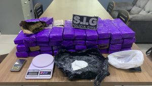 Ao chegar no local indicado, os policiais logo sentiram forte odor similar à maconha e localizaram tabletes deste tipo de entorpecente e também de cocaína, armazenados na residência. Ao todo foram apreendidos 40 tabletes de maconha e 124 gramas de cocaína, além de petrechos utilizados para comercialização da droga.