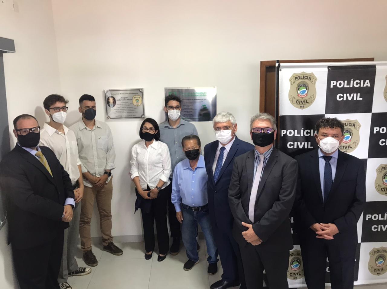 A Polícia Civil inaugurou hoje, 30/11, a placa que denomina Delegacia de Polícia Civil de Bataguassu. De acordo com a Lei nº 5.730, de 4 de outubro de 2021, a unidade passa a se chamar “Delegacia de Polícia Civil – Dr. Abílio Carlos Mazini”, em homenagem ao delegado aposentado, que faleceu no ano passado, aos 63 anos, vítima de câncer.