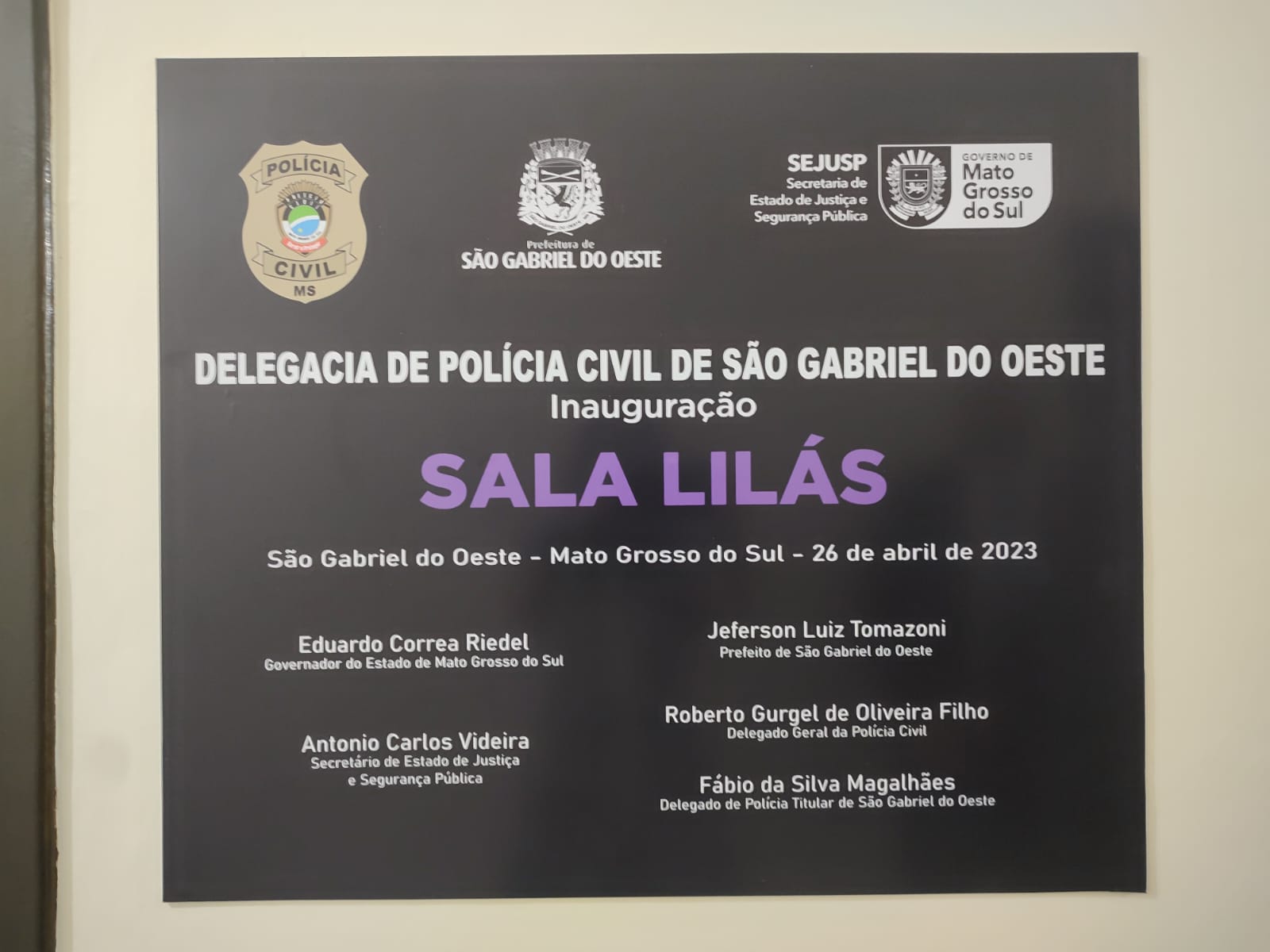 A Polícia Civil inaugurou nesta quarta-feira, 26/04, mais uma “Sala Lilás”, desta vez, em São Gabriel do Oeste-MS. A solenidade contou com a presença de diversas autoridades civis e militares, dentre elas, o Delegado-Geral da Polícia Civil, Roberto Gurgel de Oliveira Filho e o prefeito da cidade Jeferson Tomazoni.