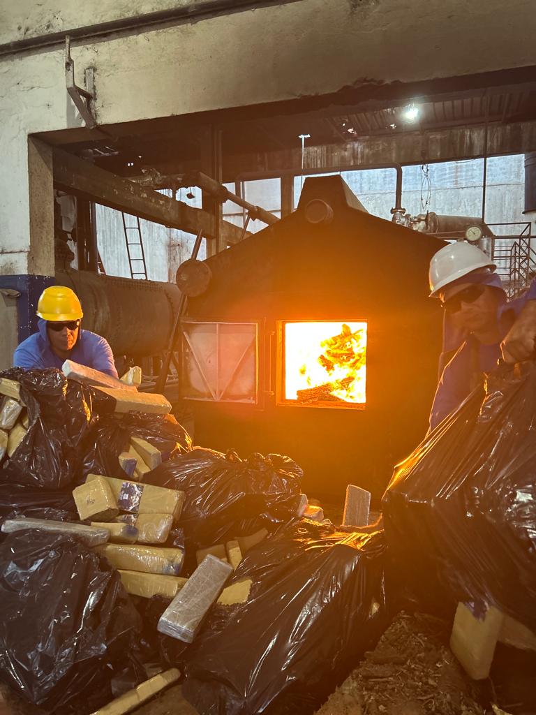 Ao todo, 1.390,86 Kg de substâncias entorpecentes foram incineradas, sendo 1.387,51 Kg de maconha, 3,8 Kg de skank e 9g de crack.