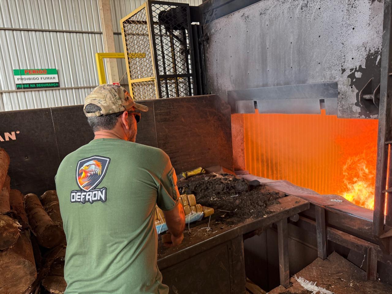 Foram incineradas substâncias ilícitas do tipo maconha, apreendidas pela DEFRON e pelo Departamento de Operações de Fronteira (DOF) da Polícia Militar.