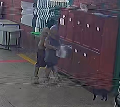 Conforme as imagens de segurança, o indivíduo entra na escola e dá uma “gravata” na vítima, de 64 anos, que estava carregando uma panela grande e pesada. Devido a força do agressor, a vítima teve que ser levada ao posto de saúde, pois ficou com ferimentos na orelha, pescoço e joelhos.