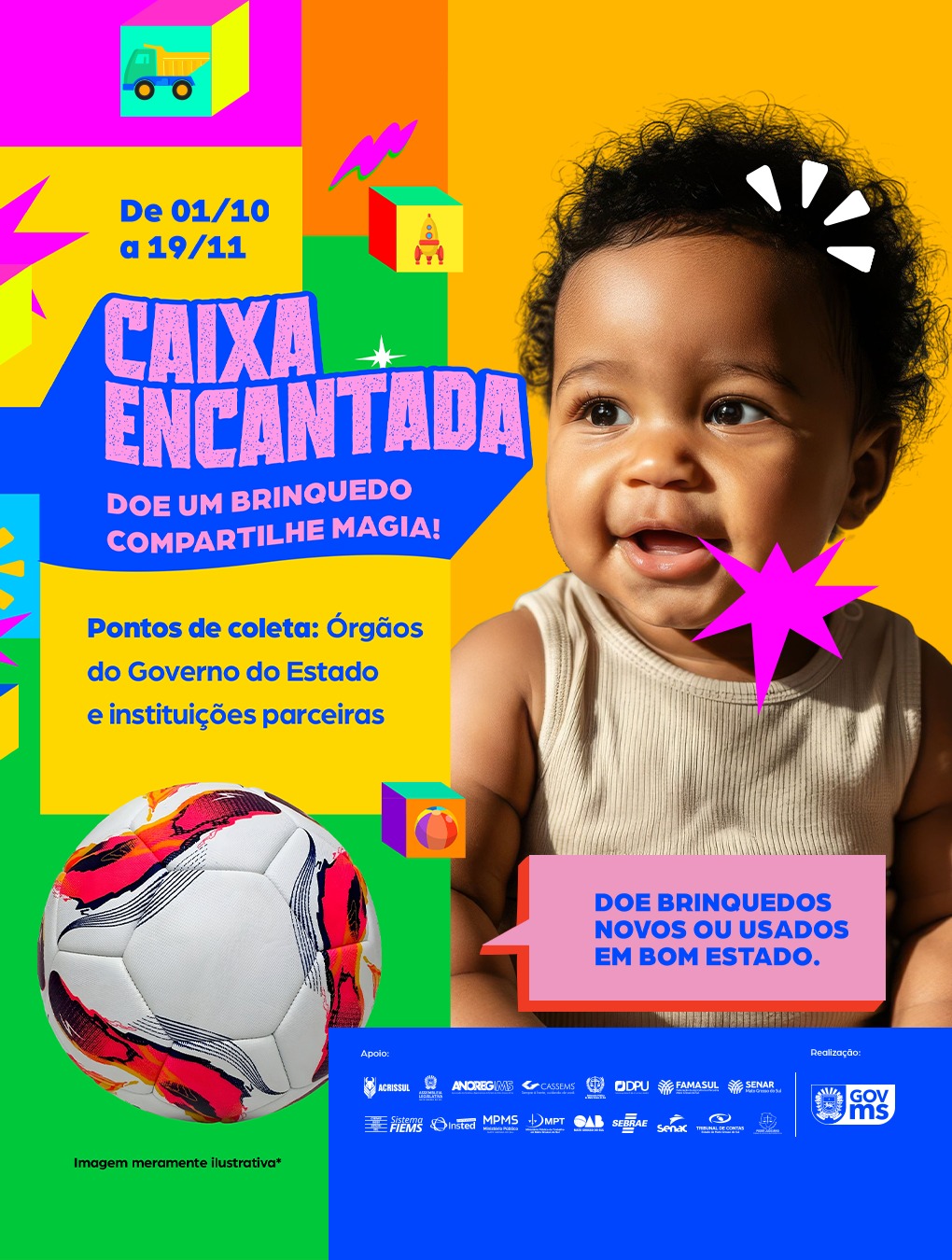 A Polícia Civil de Mato Grosso do Sul, em uma parceria fundamental com o Governo do Estado, tem o orgulho de anunciar a abertura da Campanha Caixa Encantada. Esta nobre iniciativa busca arrecadar brinquedos para levar a alegria de um Natal mais digno e feliz a crianças em situação de vulnerabilidade em todo o nosso estado.