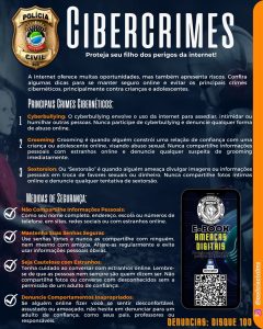 Desse modo, DEPCA e Delegacia de Polícia de Bonito realizaram no início da noite da última quarta-feira (08) uma ação de conscientização aos moradores locais sobre a importância da educação cibernética como papel fundamental na proteção de crianças e adolescentes na internet. Adicionalmente, em alusão ao mês “Maio Laranja”, a Especializada lançou um folder de divulgação à comunidade sul-mato-grossense sobre o eBook “Ameaças Digitais – Proteja seu filho dos perigos da internet”, no qual são debatidos os principais crimes cibernéticos combatidos pela Especializada: