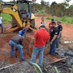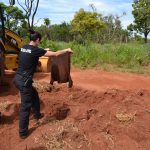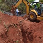 As escavações estão sendo realizadas com auxílio de uma retroescavadeira cedida pela Águas Guariroba.