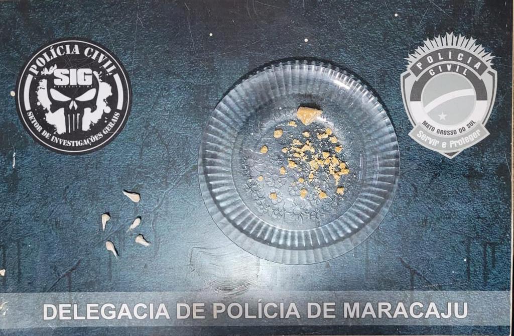 Policiais Civis do SIG de Maracaju, em diligências para cumprimento de mandado judicial de prisão, flagram indivíduo preparando entorpecentes para venda.