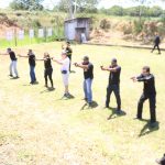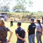 Os policiais, após as instruções de manuseio e segurança, efetuaram disparos com as respectivas armas.
