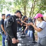 Pela manhã todos os policiais fizeram treinamento com suas pistolas calibre .40, onde foram passadas instruções de manuseio, objetivando os princípios de legalidade, segurança própria e de terceiros sempre orientados pelo uso progressivo da força.