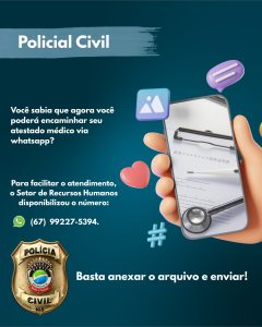 A Polícia Civil de Mato Grosso do Sul, por meio do Departamento de Gestão de Pessoal, divulgou orientações aos servidores sobre os procedimentos para solicitação de licença para tratamento de saúde, com o objetivo de padronizar o fluxo de atendimento, evitar retrabalhos e garantir maior agilidade na análise dos afastamentos.