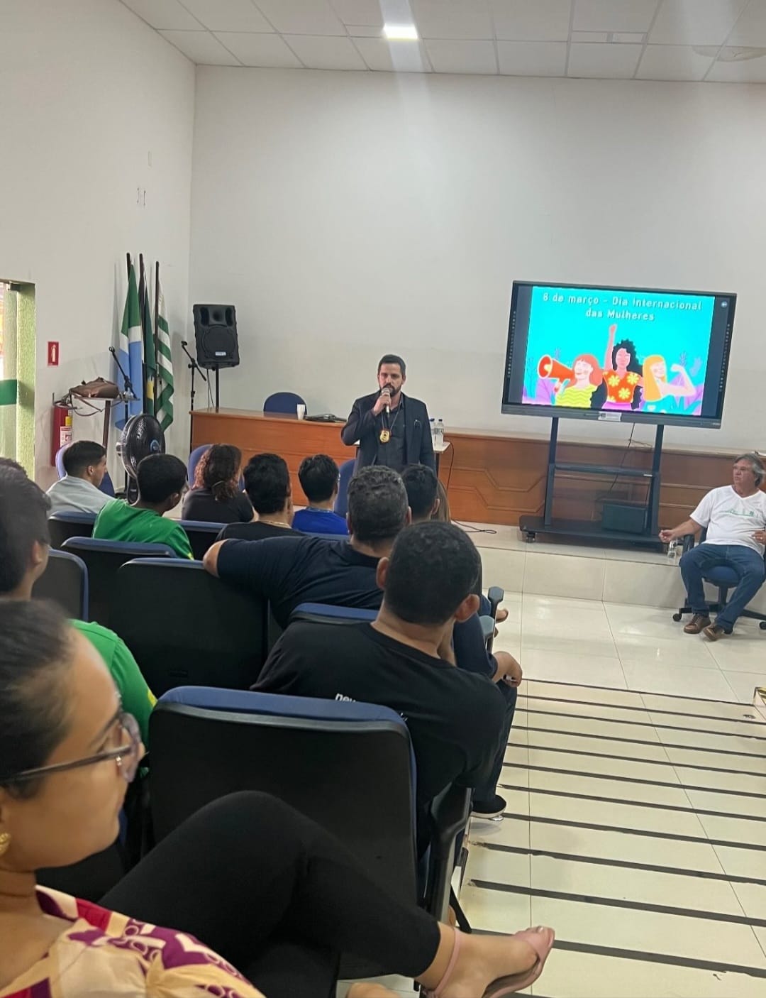 Em seu discurso, o delegado abordou a importância da Polícia Civil em relação à repressão rígida de crimes no âmbito da violência contra a mulher, bem como sobre a importância da prevenção e orientação para que os crimes não ocorram.
